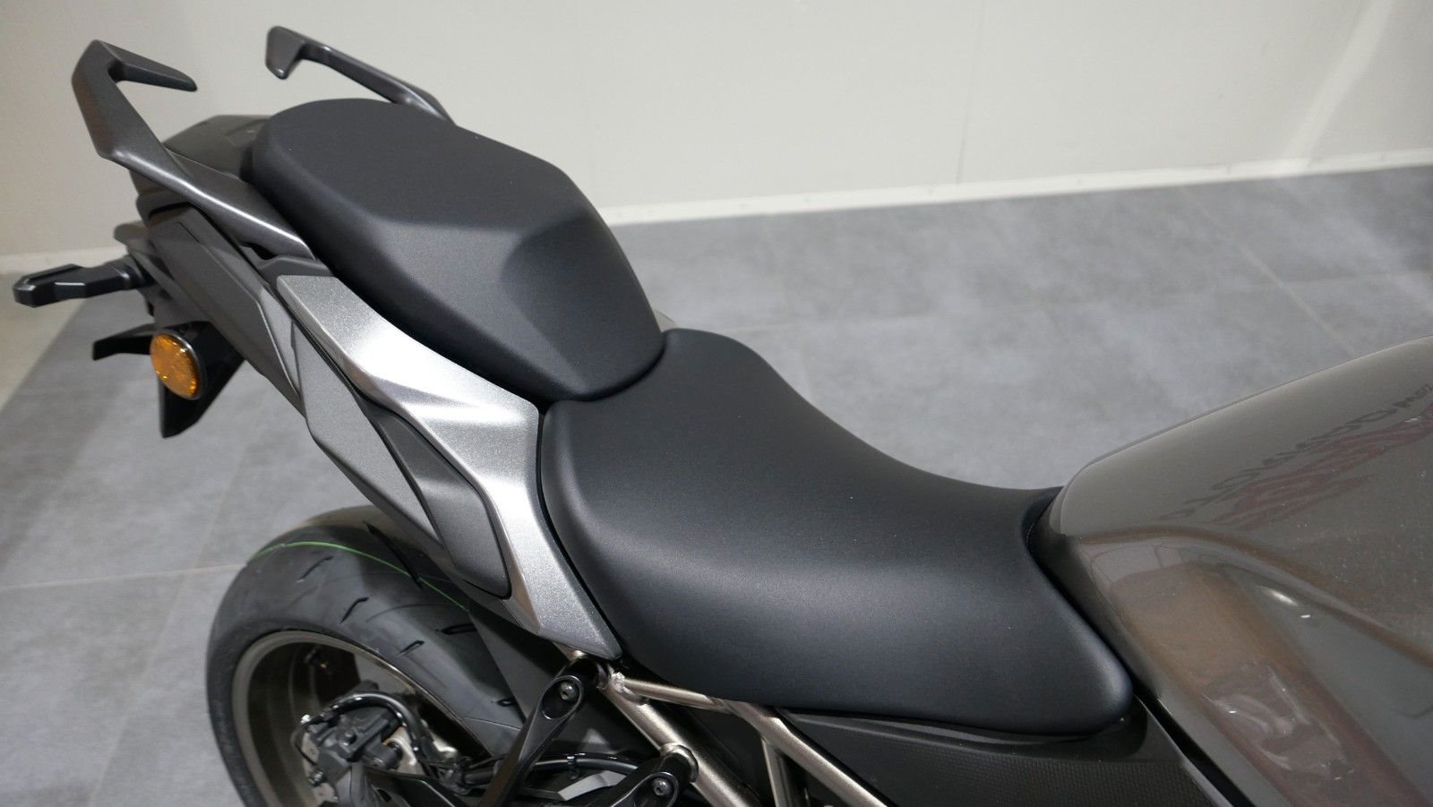 Die 43-mm-Vorderradgabel von KYB sorgt für ein sportliches aber dennoch sensibles Fahrverhalten. Sie verfügt über Einstellmöglichkeiten der Dämpfung in Zug- und Druckstufe sowie der Federvorspannung. An dem über Hebel angelenkten Zentralfederbein lassen sich Zugstufendämpfung und Federvorspannung anpassen.