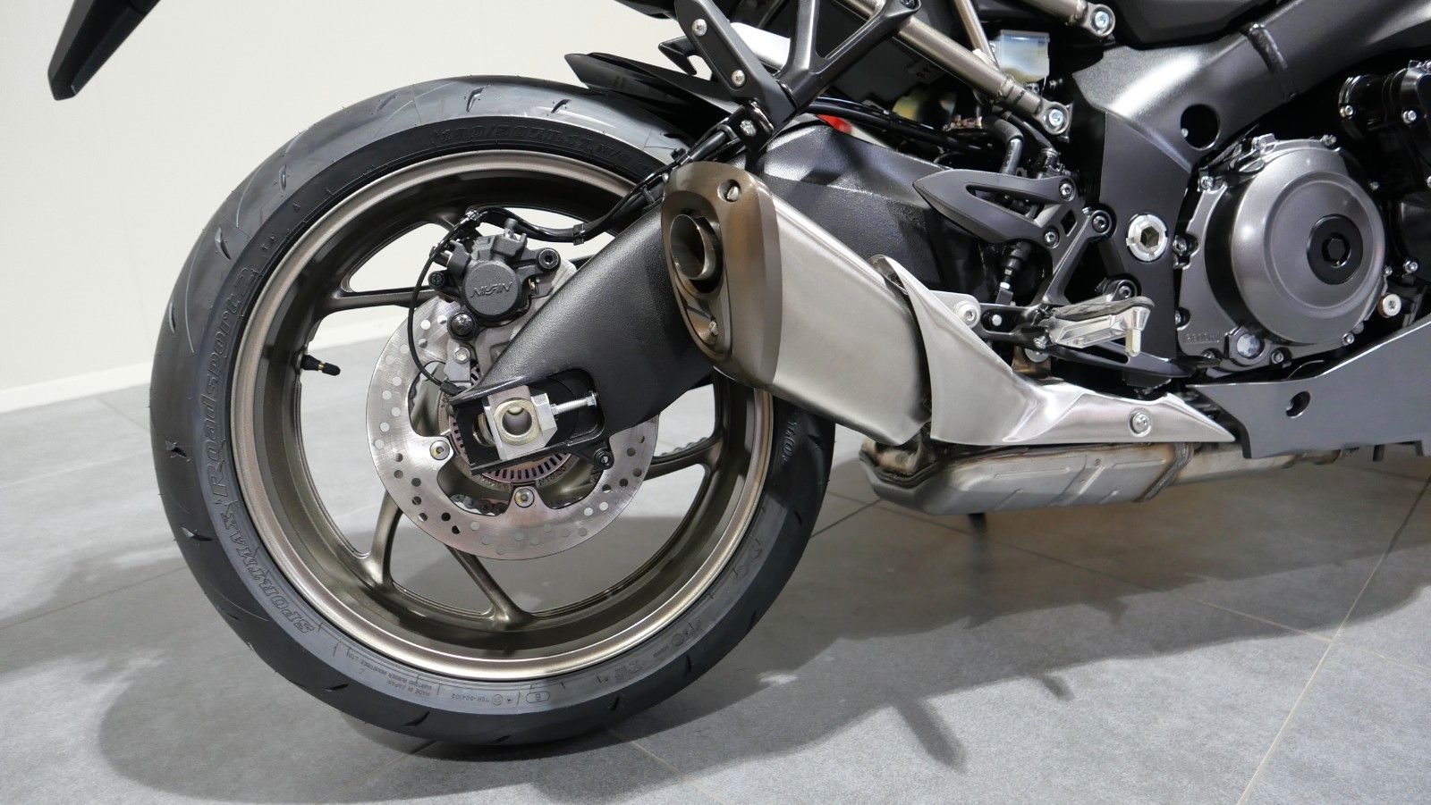 Die Aluminium-Gussräder der neuen GSX-S1000GT haben ein leichtes Sechs-Speichen-Design. Die Dunlop Roadsport 2 Radialreifen wurden für die neue GT entwickelt. Die speziell ausgelegte Karkasse und der nahtlose Stahlgürtel gewährleisten im Zusammenspiel mit dem neuen Profil und der innovativen Gummimischung ein sicheres und stabiles Fahrverhalten.